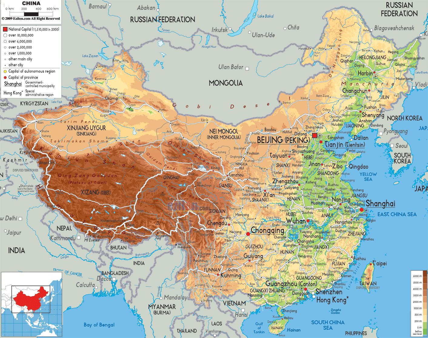 China no mapa. Queixo mapa (Leste de Asia - Asia) para imprimir. Queixo mapa (Leste de Asia - Asia) para descargar.